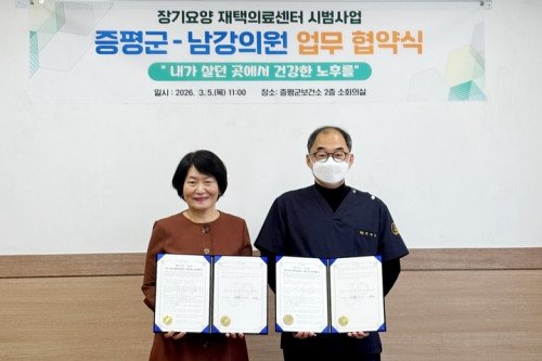 충북 증평군보건소는 5일 보건소에서 남강의원(원장 연재현)과 '장기요양 재택의료센터 시범사업 협약'을 체결했다고 밝혔다.앞서 군은 증평형 노인복지모델의 일환으로 남강의원과 협력해 방문진료 서비스를 도입하며 마을 중심 돌봄망에 의료 기능을 결합해 왔다.이번 협약은 그 연장선에서 한 단계 더 나아가, 의사·간호사·사회복지사가 함께 참여하는 다학제 팀을 구성해 체계적인 재택의료 서비스를 제공하기 위한 제도적 기반을 마련한 것이다.장기요양 재택의료센터는 장기요양 재가급여 수급자 중 1∼2등급자를 우선 대상으로 한다.거동이 불편해 재택의료가 필요하다고 의사가 판단할 경우, 다학제 팀이 대상자별 건강 상태와 생활 여건을 종합적으로 평가해 맞춤형 관리 계획을 수립한다.의사는 월 1회 이상 정기 방문진료를 실시하고, 간호사는 월 2회 이상 방문간호와 복약 지도를 담당한다.사회복지사는 주거 환경과 복지 자원 연계 필요성을 점검하고 군 통합돌봄 체계와 연계해 서비스를 조정한다.의료와 복지를 분리하지 않고 하나의 생활권 안에서 통합 관리하는 구조다.이를 통해 병원 방문이 쉽지 않아 치료를 미루던 고령층도 익숙한 가정에서 안정적으로 의료서비스를 받을 수 있게 된다.요양병원 입소를 고민하던 가구의 부담을 덜고, 가족 돌봄 부담 완화에도 기여할 것으로 기대된다.특히 이번 협약은 오는 3월 27일부터 전국적으로 시행되는 통합돌봄지원법에 발맞춘 선제적 조치라는 점에서 의미가 크다.국가 차원의 통합돌봄 정책이 본격화되는 시점에, 지역 실정에 맞게 다듬어 온 증평형 복지모델이 결합하면서 제도와 현장이 맞물리는 시너지 효과가 기대된다.조미정 보건소장은 "이번 협약은 지역 어르신들이 보다 안전하고 안정적인 환경에서 의료서비스를 받을 수 있도록 하는 중요한 전환점"이라며 "앞으로도 지역 의료기관과의 협력을 확대해 맞춤형 보건·의료 서비스를 지속적으로 강화하겠다"고 밝혔다.