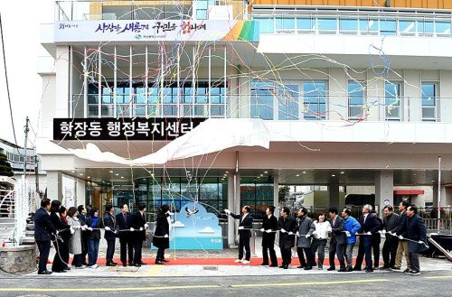 부산 사상구는 지난 26일 학장동 행정복지센터 앞 야외광장에서 학장동 행정복지센터 신청사 개청식을 개최했다고 밝혔다.이날 개청식에는 조병길 사상구청장을 비롯해 시·구의원, 각급 단체장과 지역주민 등 400여 명이 참석해 학장동 행정복지센터의 새로운 출발을 축하했다.신청사는 부산시 15분 생활권 정책공모 시비 30억 원을 포함해 총사업비 109억 원이 투입됐으며, 지하1층·지상4층, 연면적 2,271㎡ 규모로 건립됐다.주요시설로는 ▲1층 북카페, 민원실, 마을건강센터 ▲2층 어린이복합문화공간 '나르며, 들락날락' ▲3층 경로당, 프로그램실 ▲4층 다목적강당, 공유주방 등이 들어섰다.특히 이날 함께 개소한 어린이복합문화공간 '나르며, 들락날락'은 지난해 부산시 어린이복합문화공간 공모사업에 선정돼 시비 14억 원, 구비 6억 원 등 총 20억 원을 들여 조성됐다,조병길 사상구청장은 "주민들의 오랜 염원이던 신청사가 차질 없이 완공돼 뜻깊게 생각한다"며 "행정 기능을 넘어 문화·복지·건강이 어우러진 주민 친화형 복합 커뮤니티 공간으로 자리매김하길 기대한다"라고 말했다.