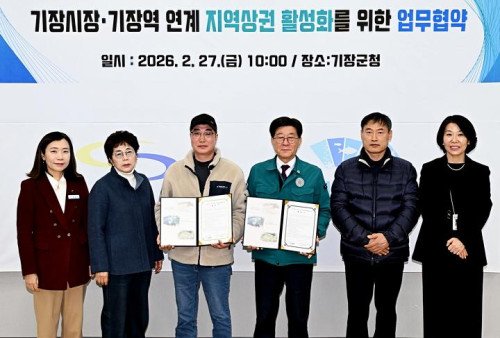 기장군(군수 정종복)은 27일 기장시장 일원 자율상권조합(이사장 김동찬)과 '기장시장-기장역 연계 지역상권 활성화를 위한 업무협약'을 체결했다고 밝혔다.이번 협약은 동해선 기장역을 이용하는 방문객의 시장 유입을 확대하고 역과 기장시장 일원을 연계한 생활권 경제 활성화를 도모하기 위해 마련됐다.협약에 따라 동해선 기장역 승차권 소지자는 기장시장 일원 자율상권구역 내 참여 점포 이용 시 결제금액의 10% 할인 혜택을 받을 수 있다. 할인 대상은 KTX-이음, ITX-마음, 무궁화호 등 기장역을 이용한 승차권 소지자로, 이용일 기준 1일 이내 발권한 승차권을 제시하면 된다. 할인혜택은 승차권 1매당 최대 2인까지 적용된다.군은 이번 협약을 통해 철도 이용객의 자연스러운 시장 방문을 유도하고, 지역 내 체류시간 확대와 소비 증대를 통해 전통시장에 활력을 불어넣을 것으로 기대하고 있다.정종복 기장군수는 "기장역은 동해선과 KTX가 정차하는 지역의 중요한 관문이다"라며, "이번 협약을 계기로 역과 시장을 연결하는 소비 동선을 구축해 지역경제 선순환 구조를 만들어 나가겠다"라고 밝혔다. 이어 "앞으로도 지역 상권과 상생하는 실효성 있는 정책을 지속적으로 추진하겠다"고 말했다.한편, 현재 총 74개 점포가 제휴에 참여하고 있으며, 기장군은 향후 참여 점포 확대와 연계 홍보 강화를 통해 사업 효과를 더욱 높여 나갈 계획이다.