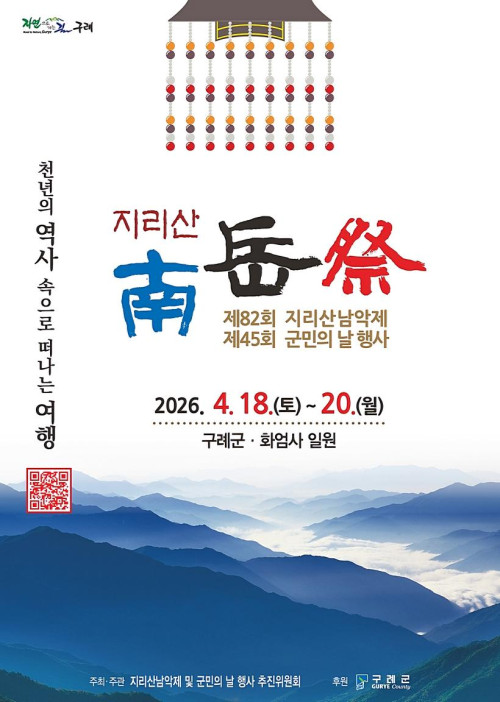 전남 구례군은 오는 4월 18일부터 20일까지 3일간 남악사, 화엄사 시설지구, 공설운동장 일원에서 '제82회 지리산남악제 및 제45회 군민의 날 행사'를 개최한다고 밝혔다.이번 행사는 '천년의 역사 속으로 떠나는 여행'을 주제로, 제례·공연·체험·경연 등 4개 마당 32개 프로그램으로 구성된 참여형 축제로 열린다. 특히 올해는 안전성과 참여도를 높이기 위해 프로그램을 전반적으로 개편해 누구나 즐길 수 있도록 했다.기존 시가행진은 참여자 고령화에 따른 안전 문제로 미추진한다. 군민체육대회는 참여형 종목 중심으로 개편해 큰공굴리기와 만보기 댄스 등을 도입하고, 축구·족구·씨름·계주 등 일부 종목은 참가 인원을 조정해 간소화했다. 또한 한궁을 정식 종목으로 채택하고 '읍면 주민대표 장기자랑'을 새롭게 선보인다.행사 첫날인 18일에는 군민의 날 기념식과 군민체육대회, 군민노래자랑이 진행된다. 19일에는 길거리 씨름대회, 읍면 윷놀이 대회, 장기자랑과 함께 '추억의 동춘서커스' 공연이 펼쳐진다. 마지막 날인 20일에는 남악제례와 헌공다례, 읍면 농악경연대회 및 백두한라예술단 초청공연으로 축제를 마무리한다.이와 함께 남악서예백일장, 글짓기, 내고장 문화재 그리기 대회, 전국 정가 시조경창대회 등 다양한 경연 프로그램도 운영된다.지리산남악제 및 군민의 날 행사 추진위원장 김종근은 "이번 행사가 군민 모두가 함께 어울리며 소통하고 화합하는 뜻깊은 시간이 되기를 바란다"고 말했다.구례군 관계자는 "지리산남악제와 군민의 날 행사는 오랜 전통을 지닌 구례의 대표 행사"라며, "군민이 하나로 단합하고 지역에 대한 자긍심을 높이는 소중한 시간이 될 수 있도록 준비에 최선을 다하겠다"고 밝혔다.