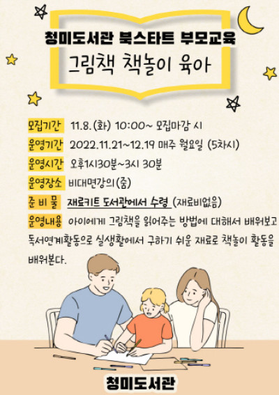 이천시 청미도서관, 북스타트 부모교육 '그림책 책놀이 육아' 운영