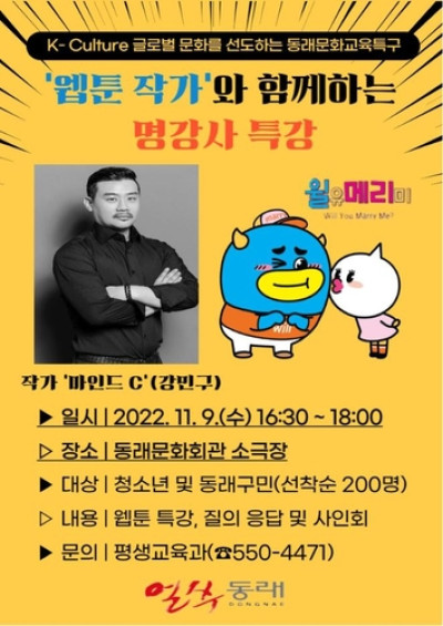 동래구, '웹툰작가'와 함께하는 명강사 특강 개최