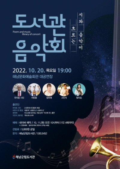 해남군, 시와 음악이 흐르는 '도서관 음악회' 개최