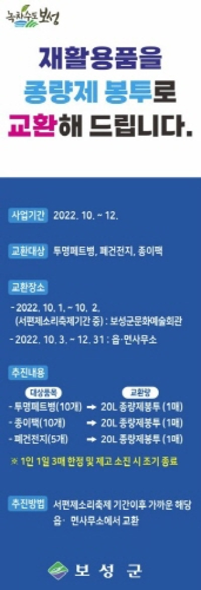 당첨자는 추첨을 통해 다음 달 14일 포천시 친환경정책과(포천 환경) 페이스북에 발표하며 선정된 50명에게 대나무 칫솔, 고체 치약 등이 포함된 친환경 여행용 양치 세트를 제공한다.