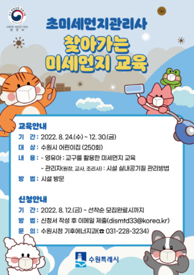 수원시, 어린이집 찾아가 미세먼지 대응 방법 알려준다