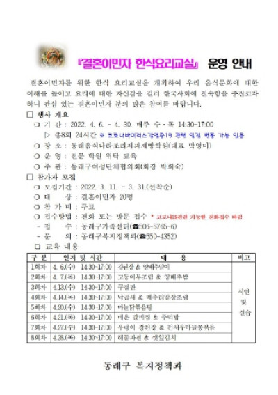 부산 동래구, 결혼이민자를 위한 전통요리교실 운영
