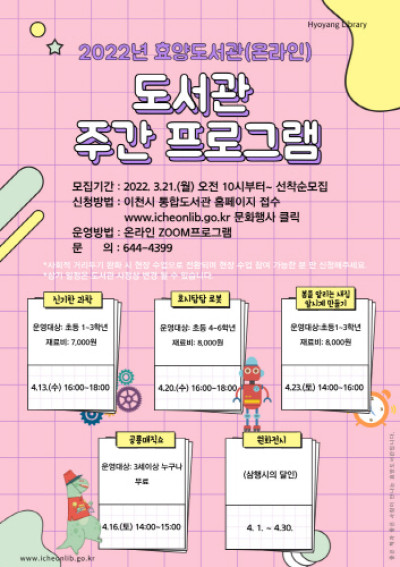 이천 효양도서관, '도서관 주간 행사' 프로그램 진행
