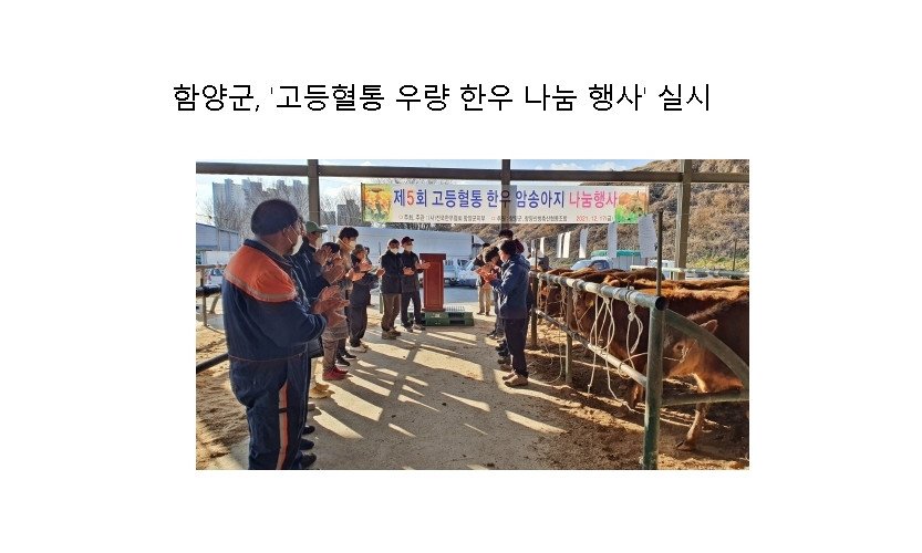 경남 함양군은 17일 오전 함양가축시장에서 소규모 한우 사육농가 우량 한우 개량을 위한 '고등혈통 우량 한우 나눔 행사'를 실시했다.지난 2017년 처음 시작된 나눔 행사는 우량 …