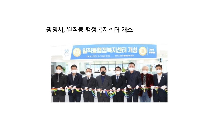 경기 광명시는 지난달 29일 업무를 시작한 일직동 행정복지센터 개소를 축하하기 위해 17일 개청식을 열었다.이날 행사에는 박승원 광명시장, 박성민 광명시의회 의장, 양기대 국회의원…
