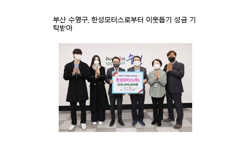 부산 수영구, 한성모터스로부터 이웃돕기 성금 기탁받아