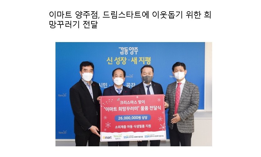 이마트 양주점, 드림스타트에 이웃돕기 위한 희망꾸러기 전달