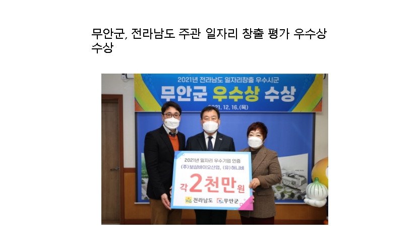 전남 무안군은 전라남도 주관 2021년 일자리 창출 우수시군 평가에서 우수상을 받아 인센티브 1,000만 원과 기관표창을 받았다고 밝혔다.군은 최근 1년 동안 일자리 예산확보, 청…