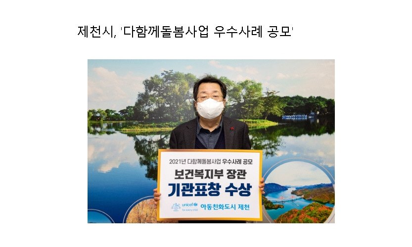충북 제천시(시장 이상천)는 2021년 다함께돌봄사업 우수사례 공모전 '전국!다돌자랑'에서 다함께돌봄사업 설치 및 운영 우수 지자체로 선정되어 보건복지부 장관 기관표창을 수상했다고…