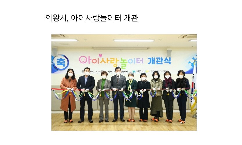 경기 의왕시는 지난 14일 의왕시장을 비롯한 시·도의원, 관내 어린이집 원장 등 30여명이 참석한 가운데 아이사랑놀이터 개관식을 가졌다.의왕시 평생학습관(오전로 122) 지하 1층…