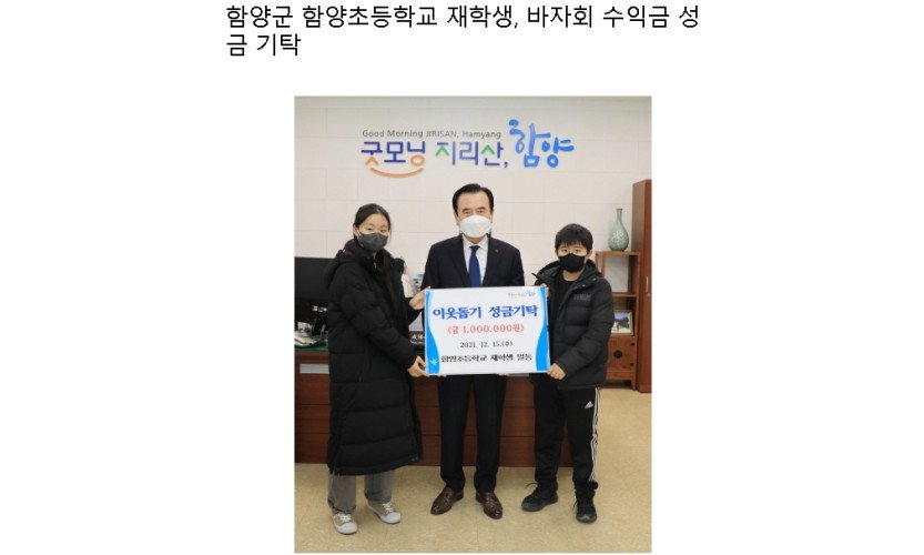역사와 전통이 살아 숨 쉬는 함양초등학교 학생들이 15일 오후 2시 경남 함양군청을 찾아와 이웃돕기 성금 100만원을 기탁하며 나눔과 사랑을 실천했다.이번 성금은 지난 2일 함양초…