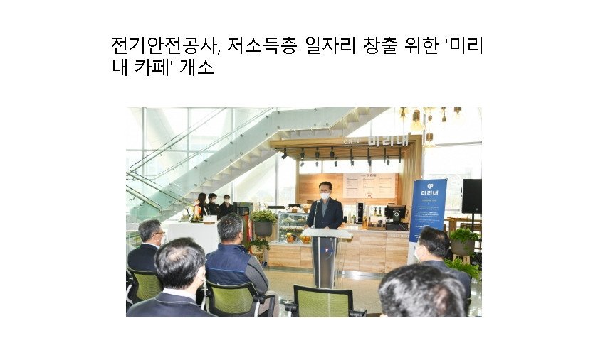 전기안전공사, 저소득층 일자리 창출 위한 '미리내 카페' 개소