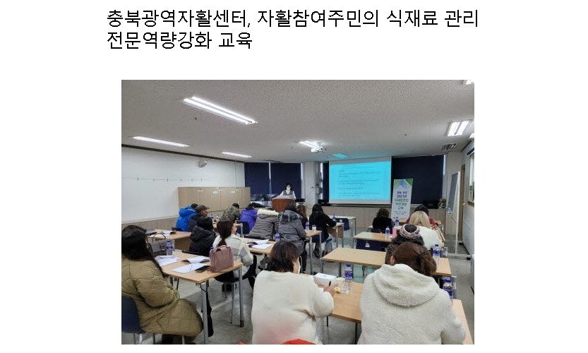 충북광역자활센터, 자활참여주민의 식재료 관리 전문역량강화 교육