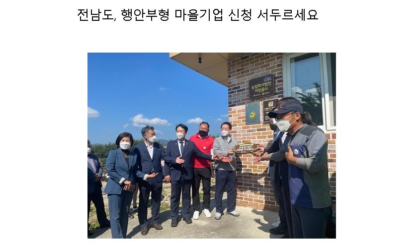 전라남도는 지역공동체의 이익을 추구하는 '마을기업' 지정을 희망하는 법인을 대상으로 오는 31일까지 2022년 행안부형 마을기업을 공모한다고 밝혔다.올해까지는 연 2회 공모했으나,…