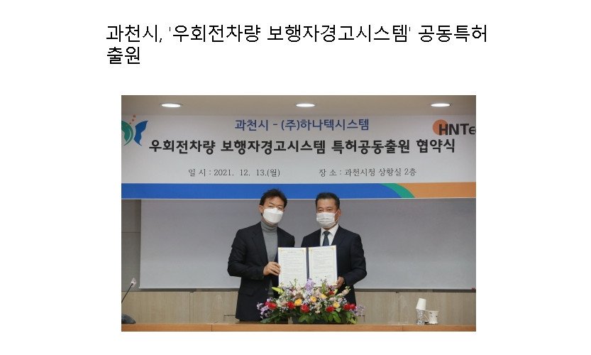 과천시, '우회전차량 보행자경고시스템' 공동특허 출원