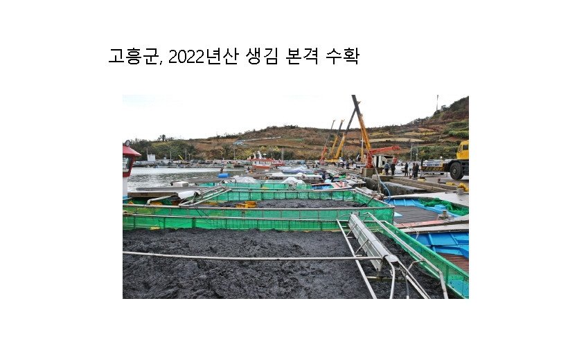 전남 고흥군(군수 송귀근)은 2022년산 생김이 본격적으로 출하를 시작했다고 밝혔다.고흥김은 올해 10,293㏊의 면적에 총 102,930책이 시설돼 도화면 구암위판장에서 지난 1…