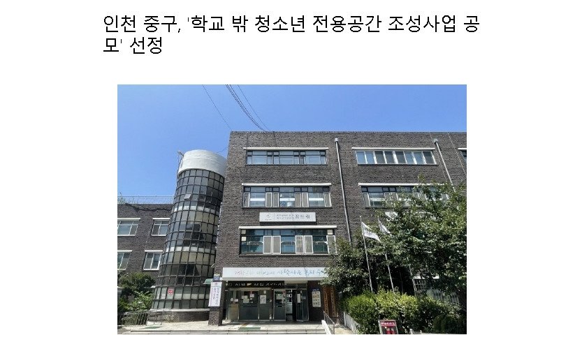 인천 중구, '학교 밖 청소년 전용공간 조성사업 공모' 선정
