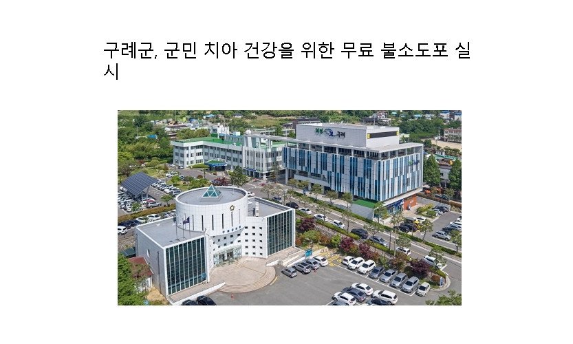 전남 구례군은 전 군민을 대상으로 충치와 시린 이 예방관리를 위한 불소도포사업과 구강보건교육을 매년 무료로 실시하고 있다.불소도포사업은 고농도의 불소바니쉬를 치아 표면에 직접 발라…