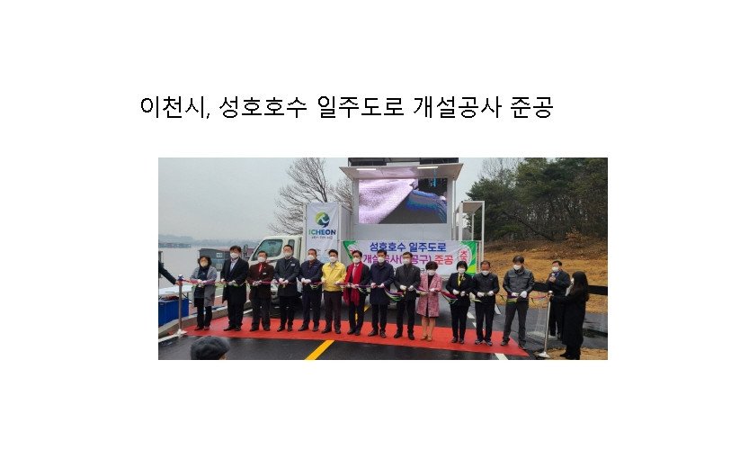 경기 이천시(시장 엄태준)는 설성면 장천리 일원의 성호호수 일주도로 전 구간을 12월 10일 개통하고 준공식을 개최했다.32만㎡ 규모의 성호호수는 5만㎡ 면적의 연꽃단지가 조성된 …