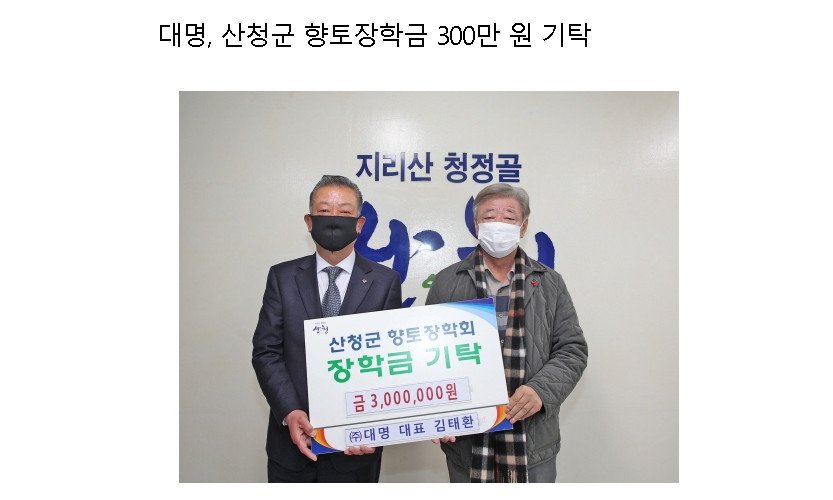 대명, 산청군 향토장학금 300만 원 기탁