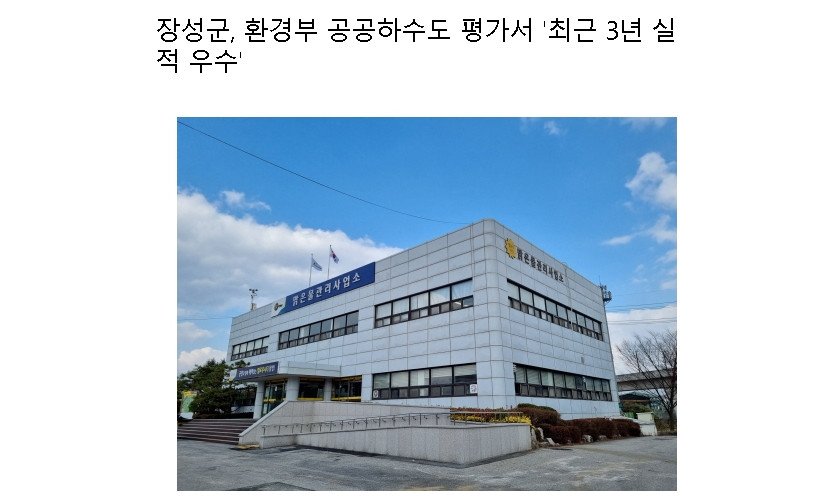 장성군, 환경부 공공하수도 평가서 '최근 3년 실적 우수'