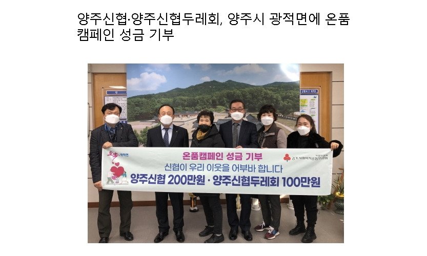 양주신협·양주신협두레회, 양주시 광적면에 온품캠페인 성금 기부