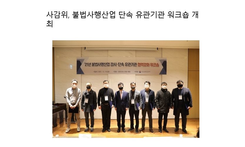 국무총리 소속 사행산업통합감독위원회(위원장 김춘순, 이하 사감위)는 12월 10일, 서울 알로프트 호텔 명동에서 '2021년 불법사행산업 감시단속 유관기관 워크숍'을 개최했다.본 …