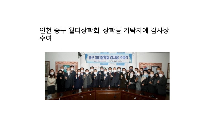 인천 중구 월디장학회(이사장 홍인성)는 지난 8일 중구청 서별관 회의실에서 2021년도 장학금 기탁자 감사장 수여식을 개최했다.이번 감사장 수여식은 어려운 여건 속에서도 미래를 성…