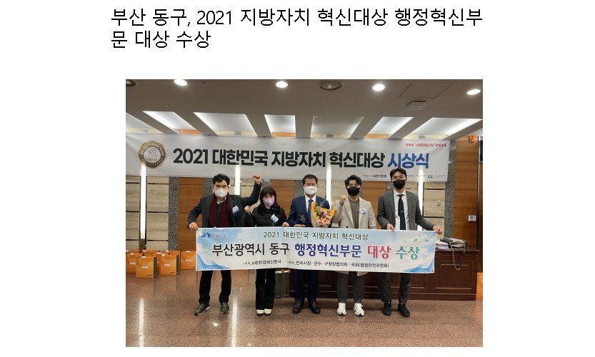 부산 동구, 2021 지방자치 혁신대상 행정혁신부문 대상 수상