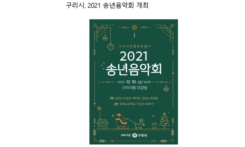 경기 구리시(시장 안승남)가 10일 오후 4시 시청 대강당에서 다사다난했던 2021년 한해를 마무리하기 위해 '2021 송년음악회'를 개최한다.이번 공연은 코로나19 장기화로 지친…