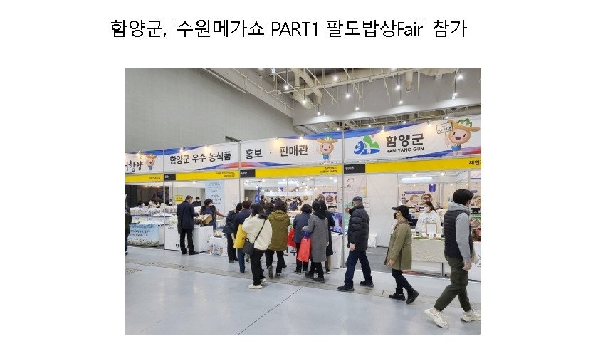 경남 함양군은 이달 9일부터 12일까지 4일간 수원컨벤션센터에서 열리는 '수원메가쇼 PART1 팔도밥상Fair'에 8개 업체가 참여해 함양군의 우수 농식품을 전시·판매한다.이번 행…
