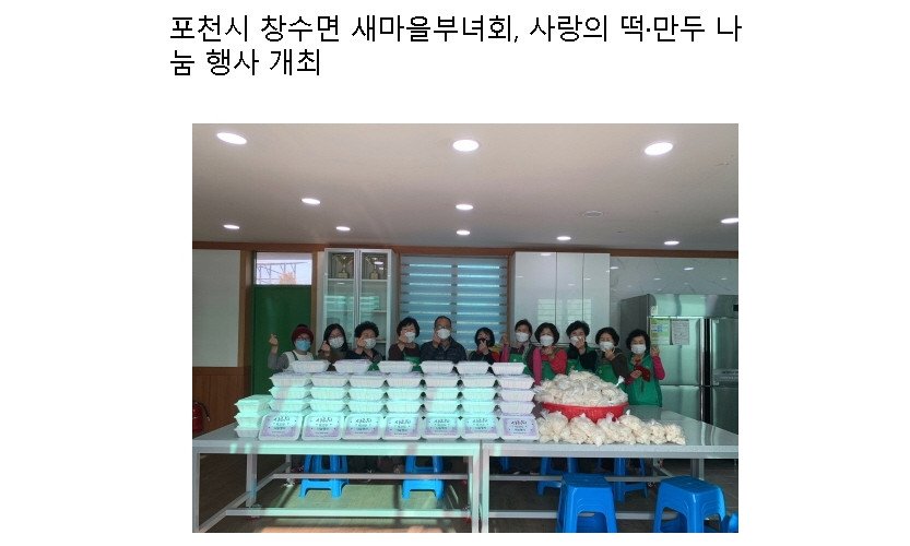 포천시 창수면 새마을부녀회, 사랑의 떡·만두 나눔 행사 개최