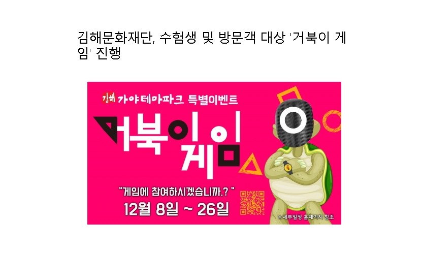 김해문화재단 김해가야테마파크가 오는 26일까지 수험생 및 방문객들을 대상으로 특별이벤트 '거북이 게임'을 진행한다.가야테마파크는 그동안 치열한 입시 준비로 지쳤던 수험생들을 응원하…