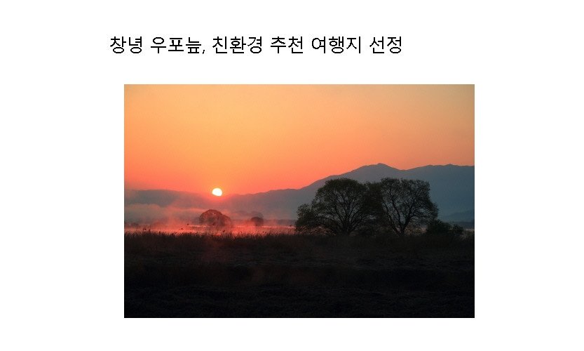 경남 창녕군(군수 한정우)은 국내 최대 내륙습지인 우포늪이 한국관광공사와 전국관광기관협의회에서 공동 추진한 '친환경 추천 여행지'에 선정됐다고 9일 밝혔다.친환경 추천 여행지(친·…
