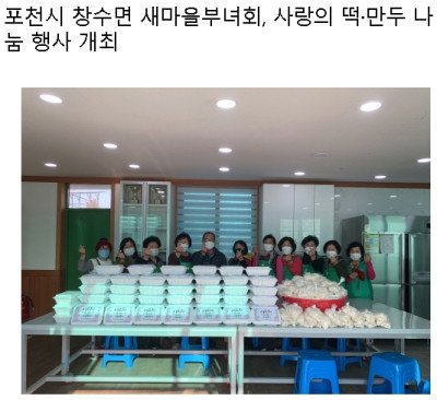 포천시 창수면 새마을부녀회, 사랑의 떡·만두 나눔 행사 개최