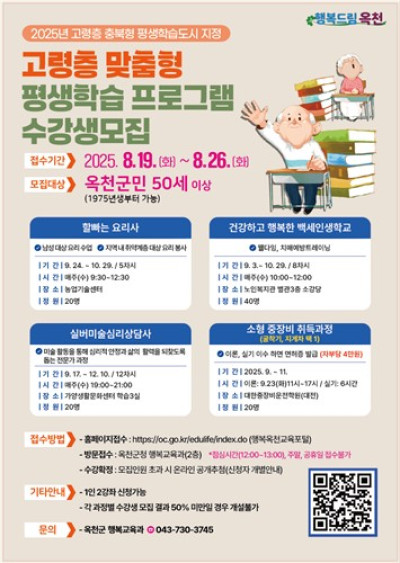 옥천군, 고령층 위한 충북형 평생학습도시 운영 본격화