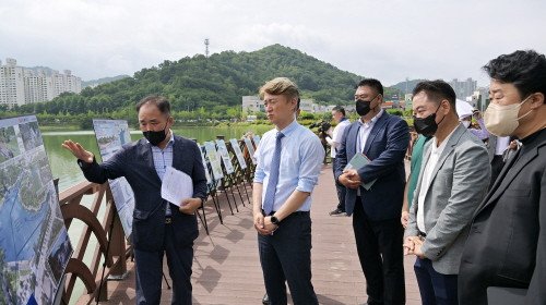 김이강 광주 서구청장은 14일 오전 녹조 발생에 따른 악취로 민원이 계속되고 있는 풍암호수 현장을 찾았다.풍암호수는 계속된 가뭄과 건장마로 인해 악취를 풍기는 남조류가 …
