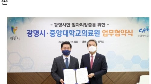 광명시-중앙대학교의료원, 시민 일자리 창출 맞손
