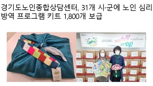 경기도노인종합상담센터, 31개 시·군에 노인 심리방역 프로그램 키트 1,800개 보급