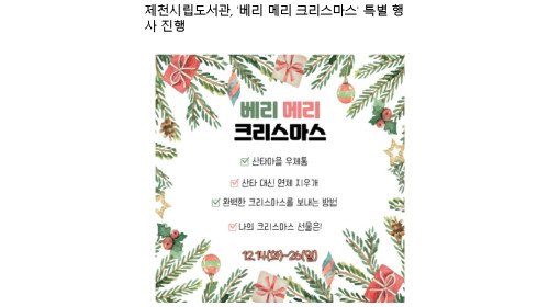 제천시립도서관, '베리 메리 크리스마스' 특별 행사 진행