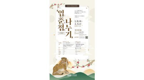 수원박물관이 임인년 첫 절기인 입춘(立春, 2월 4일)을 맞아 액운을 막고 복을 기원하는 세시(歲時) 행사 '입춘첩 나누기'를 연다. 세시 행사는 '코로나 퇴치! 세화 …