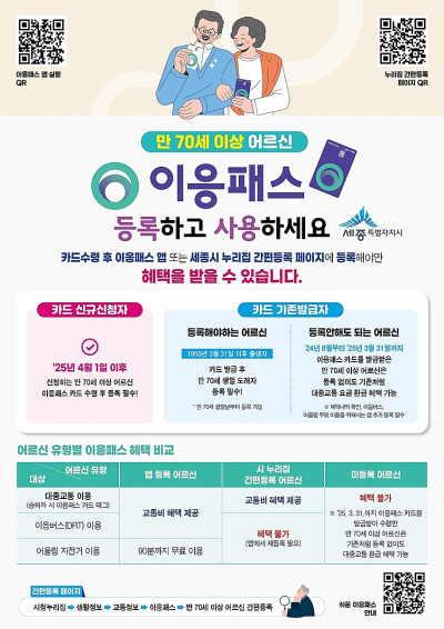 세종시 "어르신, 이응패스 카드 꼭 등록하고 사용하세요"
