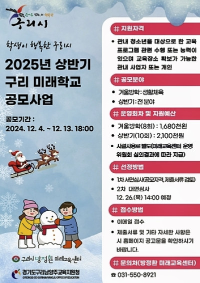 구리시, 2025년 상반기 '구리 미래학교' 공모사업 접수