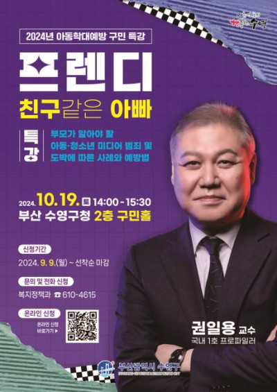 수영구, 2024 아동학대예방 구민 특강 '프렌디 친구같은 아빠' 개최