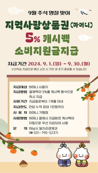하남시 "9월은 하머니로 장보세요"…추석 맞이 최대 1만 원 캐시백 이벤트