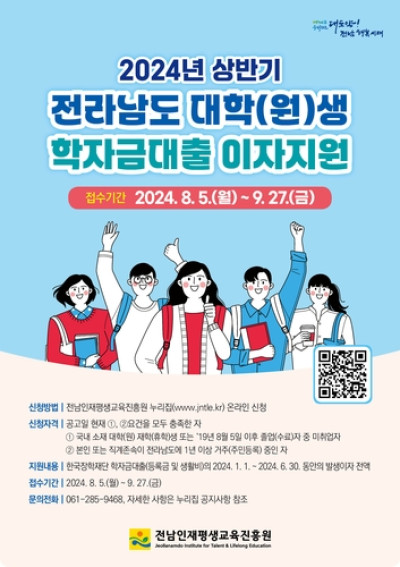 전남도, 대학생 학자금 대출이자 지원 신청하세요